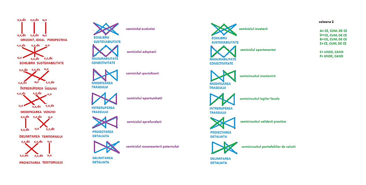 Permutările circulare dintre ce; cum; de ce și unde, când, dacă au o regulă ce se repetă, conduc la un spațiu coerent al structurilor informaționale, ce permite atât o viziune a variației in timp, in funcţie de context, cât și o descifrare a semnificațiilor conform unor referențiale clare [ Vezi Semicicluri ]
