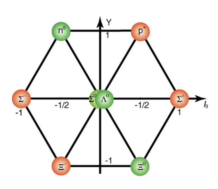 This theory states that baryons and mesons are organized into octets. This discovery eventually led to Gell-Mann's other major discovery, Quarks and the Quark model. The Eightfold Way also implies that mesons can also split into a decuplet, which was followed up with a discovery of a new particle, called Ω−. These discoveries led to his Nobel Prize in 1969 for his contribution to elementary particles.
