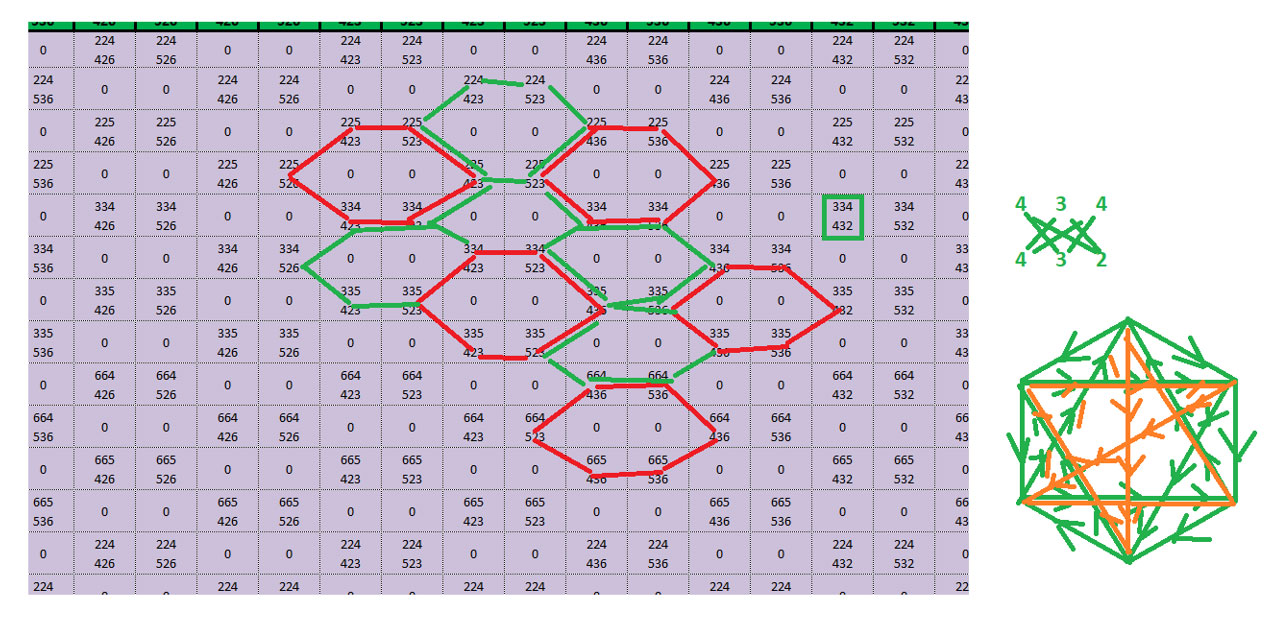 Izomorfismul dintre câmpul verde si tabelul de compunere al automorfismelor, mai arată un detaliu semnificativ. Acesta este legat de variația paternurilor in medii de hrănire diferite, plecate de la structuri genomice. Studiile lui Peter Gariaev de genetică confirmă rezultatele obținute din analiza anterioară.
