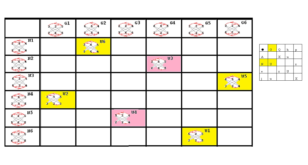 Aceasta se face punctual. De exemplu, un anumit N cu un anumit G generează un anumit U. Toate celelalte sublitere nu se pot compune. Principiul în sine poate fi transferat în limbaj social prin „omul potrivit la locul potrivit”.
