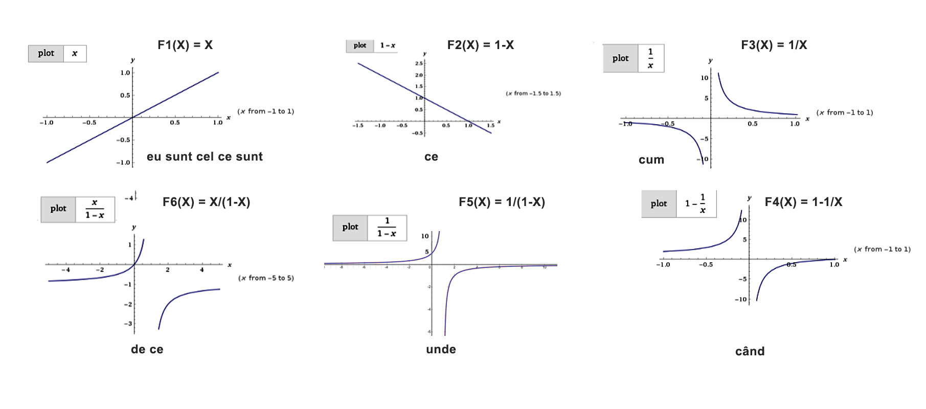 Graficele automorfismelor proiective generează semnificații comportamentale ce permit tratarea schematică lingvistică. Acestea sunt atribuite prin asocierea dintre comportamentul graficului (asimptote, puncte prin care trece) și semantica caracteristică: „ce”, „cum”, „de ce”, „unde”, „când”.